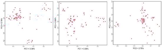 PCA visualization results showed (Figure 1) that the ram samples were scattered without obvious clustering. PC1, PC2 and PC3 could respectively explain 3.38, 2.76 and 2.64%, and the vast majority of individuals were distributed in the positive half axis of PC2.