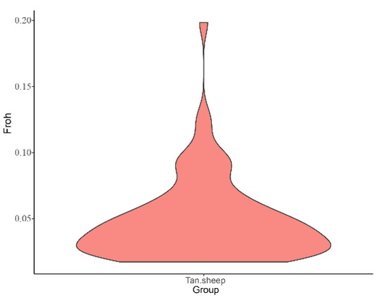 Violin plot of genomic inbreeding in Tan sheep. The width of the graph indicates the probability density distribution of the population . The wider part of the graph indicates the larger number of samples at that level, and the smaller, the number of samples at that level.
