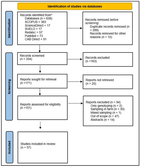 Rossi, G.A.M.; de Freitas Costa, E.; Gabriël, S.; Braga, F.R. A Systematic Review and Meta-Analysis on the Occurrence of Toxoplasmosis in Animals Slaughtered in Brazilian Abattoirs. Animals 2022, 12, 3102. https://doi.org/10.3390/ani12223102
