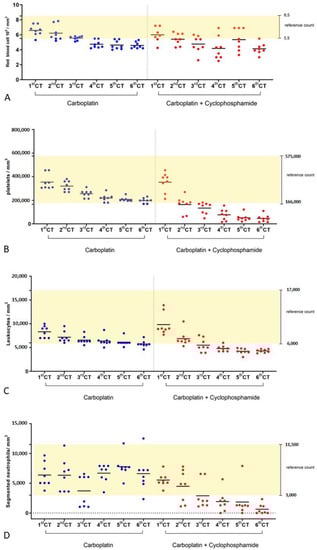 - Coffee, C.; Roush, J.K.; Higginbotham, M.L. Carboplatin-induced myelosuppression as related to body weight in dogs. Vet. Comp. Oncol. 2020, 18, 804–810. [Google Scholar] [CrossRef]