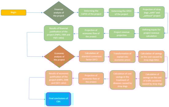 In the continuation, in Figure 2, we present a methodological flowchart so that readers can better follow and understand the procedure of the conducted financial and economic analysis of the justification for the construction of a shelter for stray dogs in the VPR, North Macedonia, which follows in the next section of the paper.