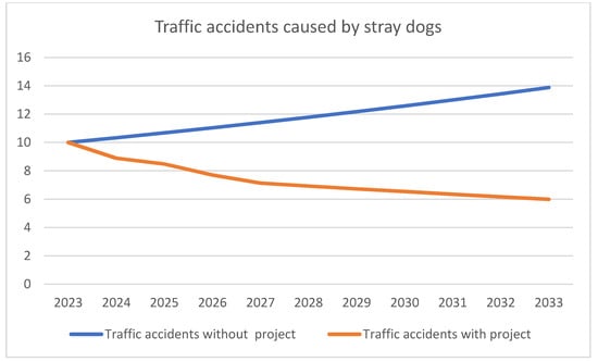 Within economic analysis, the following socio-economic benefits of the project were quantified and monetized: savings in the costs caused by stray dog bites, savings in the cost of traffic accidents caused by stray dogs, and savings in the treatment of diseases caused by stray dogs.