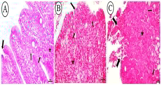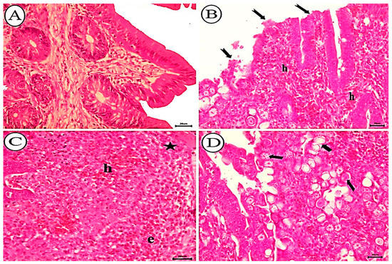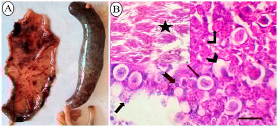 - Hussein, S.H.; Soad, M.; Mervat, A.A.; Gehan, N.A.; Rania, A.A. Comparative biochemical and pathological studies between Toltrazuril and garlic supplementation in chickens infected with coccidiosis. Egypt. J. Anim. Health 2021, 1, 65–80. [Google Scholar] [CrossRef]
