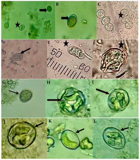 - Burrell, A.; Tomley, F.M.; Vaughan, S.; Marugan-Hernandez, V. Life cycle stages, specific organelles and invasion mechanisms of Eimeria species. Parasitology 2020, 147, 263–278. [Google Scholar] [CrossRef] [PubMed]
