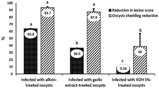 3.4. In Vivo Infectivity of E. tenella Sporulated Oocysts Treated with the Allicin and Alcoholic Garlic Extract
