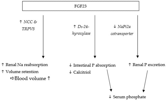- Erben, R.G. Physiological Actions of Fibroblast Growth Factor-23. Front. Endocrinol. 2018, 9, 267. [Google Scholar] [CrossRef] [PubMed]