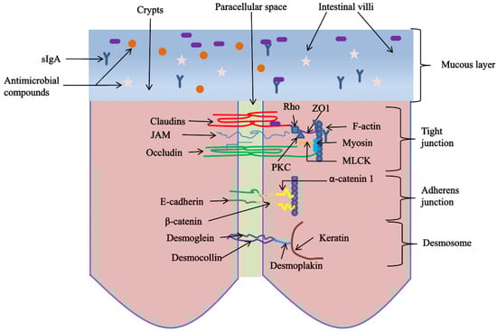 Schematic diagram of intestinal epithelial intercellular junction complex and intestinal mucosal layer [] Reprinted with permission from Ref. [], Patra. (2020).