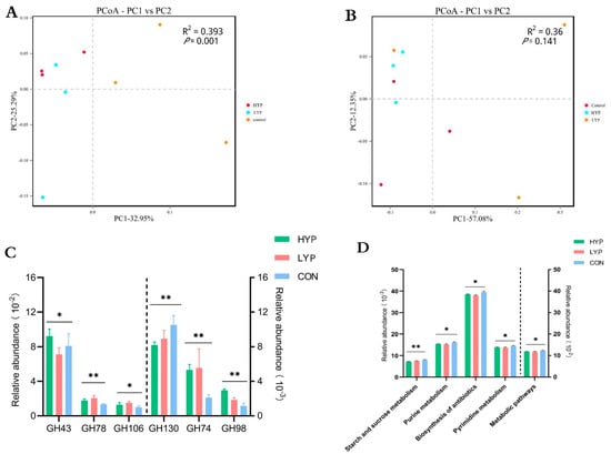 3.1. Effects of YP on Fermentation Parameters, Abnormal Metabolites and Digestive Enzyme Activity