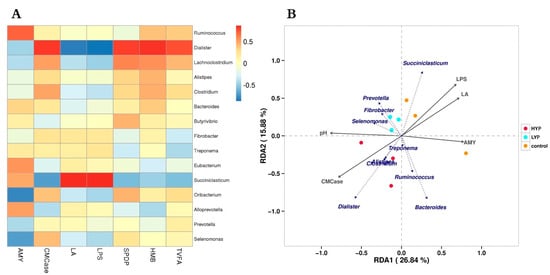 3.3. YP Changed the Composition of Microorganisms Related to Lactic Acid Metabolism and Methanogens in the Rumen