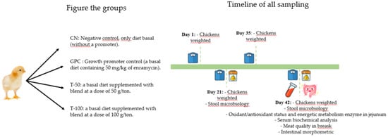 Worldwide, countries are adopting rules designed to reduce the use of antibiotics as growth promoters in poultry. Restrictions have also been imposed on the use of antibiotics as growth promoters in animal feed. The European Union banned the use of antimicrobials in 2006 [1]. Countries such as the USA, Canada, Mexico, Japan, China, and India have limited the use of antimicrobials as promoters in animal feed [2]. In Brazil, the second-largest producer and the largest exporter of chicken meat, there is also a partial prohibition of some of these agents [3,4]. There is growing pressure to adopt growth-promoting antimicrobials due to the possibility of cross-resistance of pathogenic bacterial strains between humans and animals.