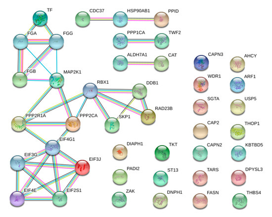 3.4. Protein–Protein Interaction (PPI) Analysis
