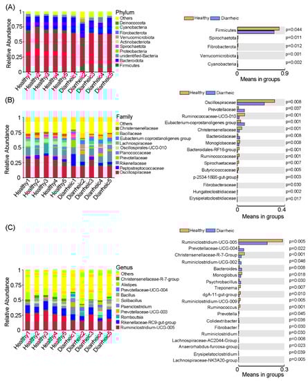 3.2. Altered Microbiota Composition in Diarrheic Père David’s deer