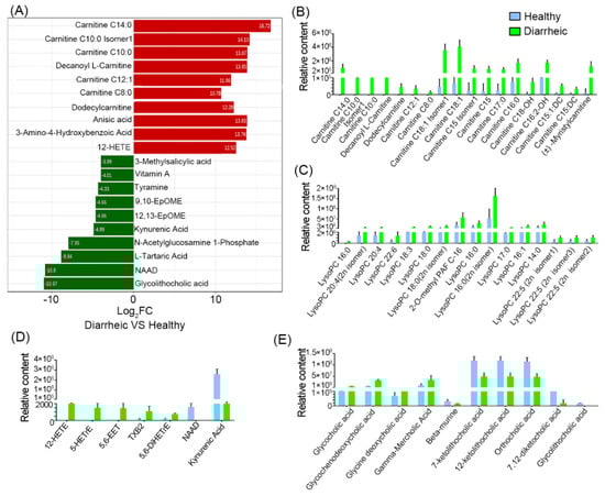 3.4. Altered Metabolites in Diarrheic Père David’s Deer