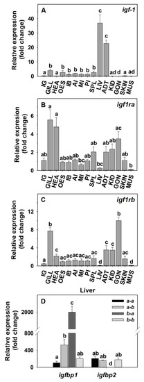 2.2. Tissue Distribution of the IGF-1 System in Goldfish