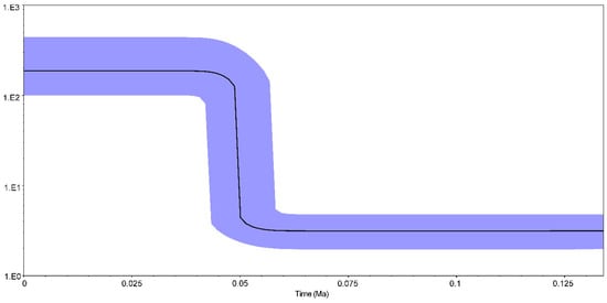 Neutrality tests displayed significant negative values for both Fu’s FS and Tajima’s D tests, indicating the population expansion of A. japonica in the Pearl River basin. Furthermore, the Bayesian skyline plot also demonstrated that population expansion (Figure 3) occurred about 0.05 Mya, which was around the Last Pleistocene era (0.126–0.018 Mya) in southern China. Southern China experienced multiple glacial periods during the Middle Pleistocene era (0.786–0.126 Mya) and entered an interglacial period during the Last Pleistocene era []. A warmer interglacial era caused an increase in sea level, changes in current patterns and upwelling intensities, and richness of nutrients, thus facilitating a population size expansion []. Moreover, the phenomenon of population expansion around the Pleistocene era was also reported in other eels such as A. pacifica, A. marmorata and A. obscura [,,].