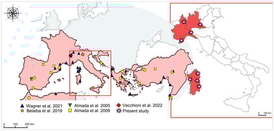 3.1. Phylogeographic Relationships among New Samples from North-West Italy and Sardinia Island