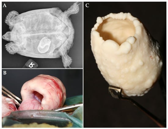 - Mans, C.; Sladky, K.K. Diagnosis and management of oviductal disease in three red-eared slider turtles (Trachemys scripta elegans). J. Small Anim. Pract. 2012, 53, 234–239. [Google Scholar] [CrossRef] [PubMed]