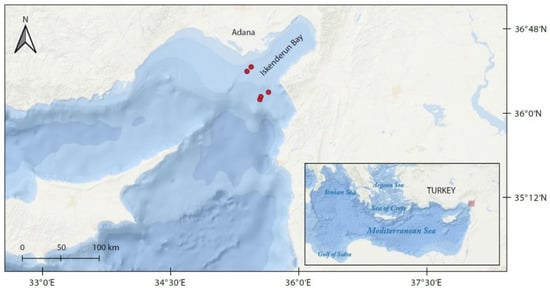 Red dots indicate out of Iskenderun Bay, Turkey, where Dipturus oxyrinchus specimens were collected.