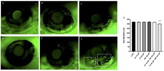 - Chow, E.S.H.; Hui, M.N.Y.; Cheng, C.W.; Cheng, S.H. Cadmium affects retinogenesis during zebrafish embryonic development. Toxicol. Appl. Pharmacol. 2009, 235, 68–76. [Google Scholar] [CrossRef] [PubMed]