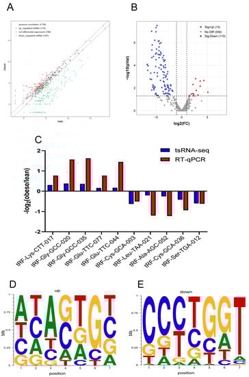 - Wang, T.; Cao, L.; He, S.; Long, K.; Wang, X.; Yu, H.; Ma, B.; Xu, X.; Li, W. Small RNA sequencing reveals a novel tsRNA-06018 playing an important role during adipogenic differentiation of hMSCs. J. Cell. Mol. Med. 2020, 24, 12736–12749. [Google Scholar] [CrossRef] [PubMed]