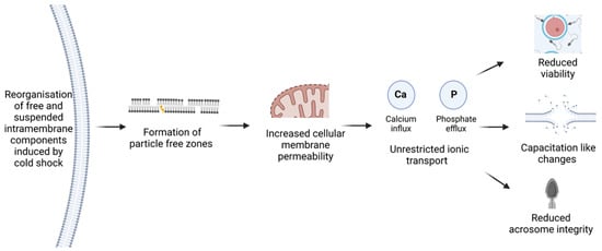 - Holt, W.V.; North, R.D. Partially Irreversible Cold-Induced Lipid Phase Transitions in Mammalian Sperm Plasma Membrane Domains: Freeze-Fracture Study. J. Exp. Zool. 1984, 230, 473–483. [Google Scholar] [CrossRef] [PubMed]