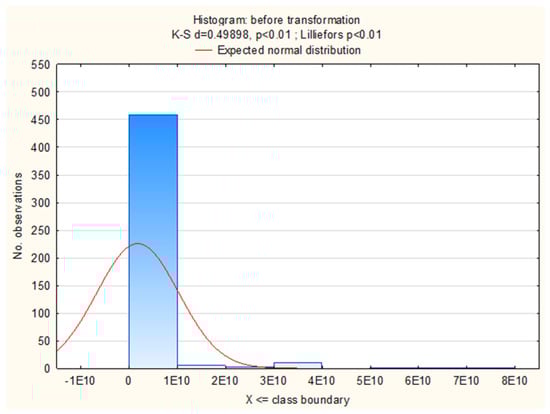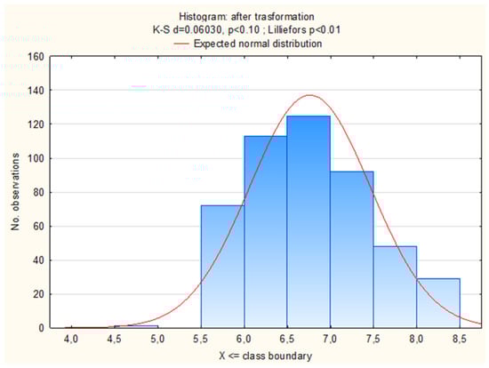 Data were analyzed using SAS version 9.4 (2014, SAS Institute, Cary, NC, USA). Before analysis was conducted, all the data were evaluated for normality using PROC UNIVARIATE SAS (SAS Institute, Cary, NC, USA). As no normal distribution was found in the collected samples (Figure 1), the count of LAB determined in the faeces underwent the Box–Cox transformation with an estimated λ = −0.114851.