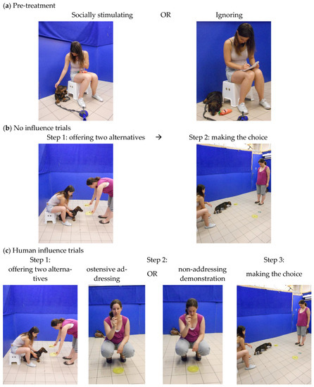 - Prato-Previde, E.; Marshall-Pescini, S.; Valsecchi, P. Is your choice my choice? The owners’ effect on pet dogs’ (Canis lupus familiaris) performance in a food choice task. Anim. Cogn. 2008, 11, 167–174. [Google Scholar] [CrossRef]