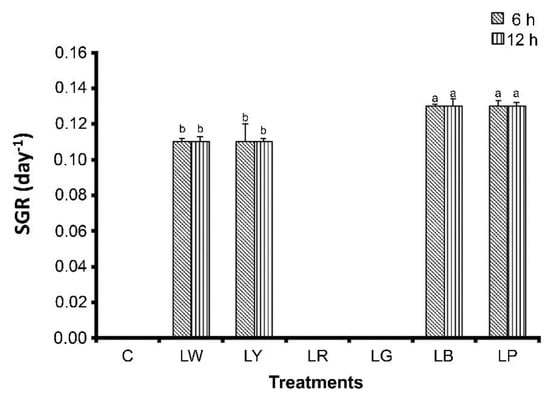 3.1. Effects of Different Types of Illumination on G. columna Growth and Survival