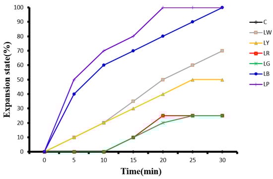 | Exposure Times | Light | Wavelength of Light (nm) | Photosynthetically Active Radiation (μmol m−2s−1) |