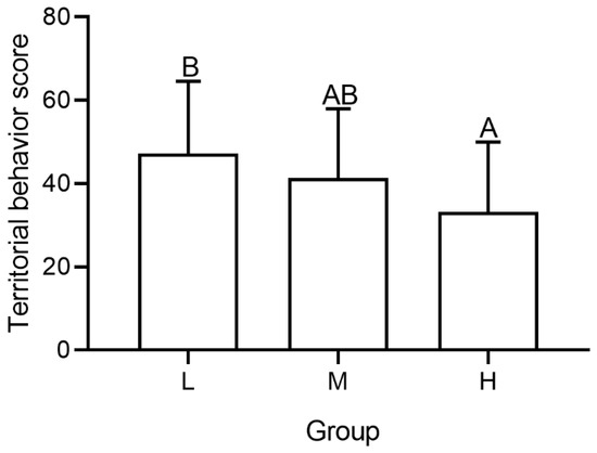 The occupant’s territory size, total number of territorial behaviors, defense time, number of bouts, and winning percentage were input into the principal component model. The first component (PC1) was designated as the “territorial behavior score” because it reflected the territoriality of occupants [25,35].