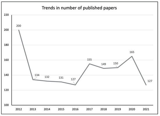 Publications were retrieved from the Web of Science (WoS) database on 4 January 2022 considering a time frame of 10 years (2012–2021).