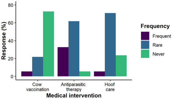 Frequency of medical interventions in Dahomey cattle herds from Germany, Austria and Switzerland.