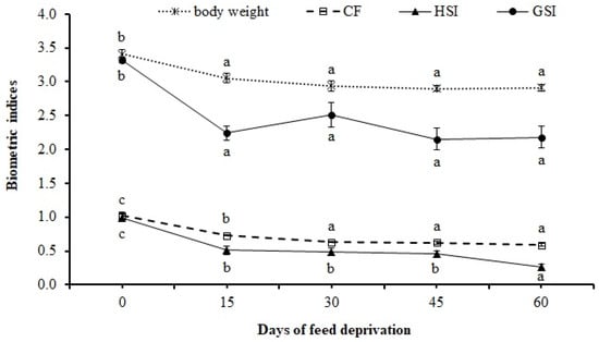 Yengkokpam, S.; Sahu, N.P.; Pal, A.K.; Debnath, D.; Jain, K.K.; Dalvi, R.S.; Slama, P.; Kesari, K.K.; Roychoudhury, S. Biometric Indices, Physio-Metabolic Responses and Carcass Quality in Rohu (Labeo rohita) during Feed Deprivation. Animals 2022, 12, 769. https://doi.org/10.3390/ani12060769