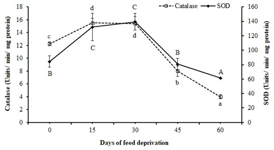 - Morales, A.E.; Pérez-Jiménez, A.; Hidalgo, M.C.; Abellán, E.; Cardenete, G. Oxidative stress and antioxidant defenses after prolonged starvation in Dentex dentex liver. Comp. Biochem. Physiol. C Toxicol. Pharmacol. 2004, 139, 153–161. [Google Scholar] [CrossRef] [PubMed]