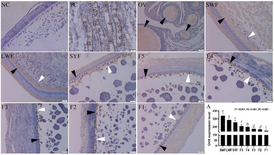 3.2. Expression Level of OVR in Different Follicle Level of Wanxi White Goose at Each Laying Period and Its Correlation with Serum Hormones
