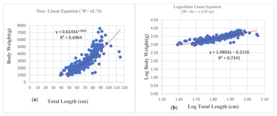 - Froese, R. Cube law, condition factor and weight–length relationships: History, meta-analysis and recommendations. J. Appl. Ichthyol. 2006, 22, 241–253. [Google Scholar] [CrossRef]