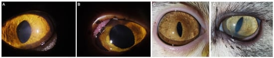 - Featherstone, H.J.; Sansom, J. Feline corneal sequestra: A review of 64 cases (80 eyes) from 1993 to 2000. Vet. Ophthalmol. 2004, 7, 213–227. [Google Scholar] [CrossRef] [PubMed]
