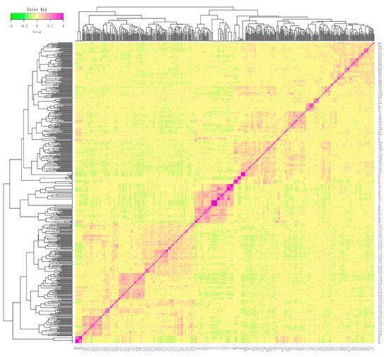 In this conserved population, the genetic relationship coefficients ranged from −0.22 to 0.89 (Supplementary Table S2), and the visualization results of the G matrix are exhibited in Figure 1. Among these relationships, some individuals have closer genetic relationships, while most of them have moderately close genetic relationships.