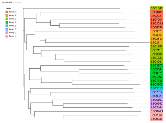 - Kumar, S.; Stecher, G.; Li, M.; Knyaz, C.; Tamura, K. MEGA X: Molecular Evolutionary Genetics Analysis across Computing Platforms. Mol. Biol. Evol. 2018, 35, 1547–1549. [Google Scholar] [CrossRef]