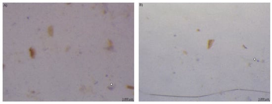 Chyme from the anterior small intestine of group EXT mice contained a much lower number of stained particles visible than in the stomach samples (Figure 6). In group PEL, the content of the anterior small intestine still showed a high number of small, round starch particles. However, unlike in the stomach, there were no large stained particles. The picture was much the same in the posterior small intestine, with fewer starch particles overall than in the anterior small intestinal samples.