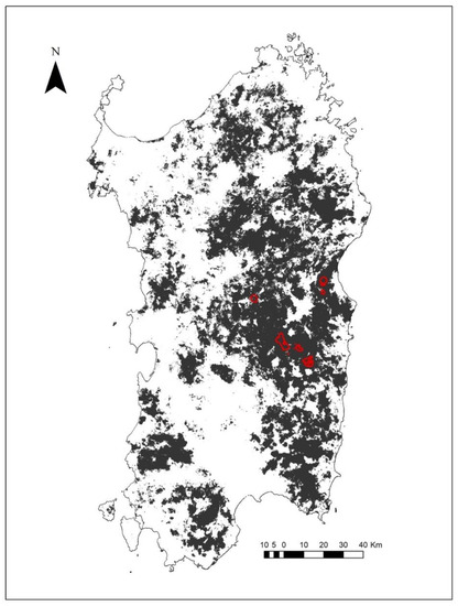 Reintroduction projects for endangered taxa play a significant role in their conservation, especially when remaining populations consist of small numbers of animals confined in small and fragmented distributional ranges. The recent natural history of the Corsican red deer highlights a similar context. The subspecies disappeared from northern and central Sardinia in 1940 (and from Corsica in 1970), and the total number was reduced to individuals split into three separated populations; the recovery began in the 1980s when the taxon was subject to active conservation measures (i.e., ex situ conservation enclosure), specific protected areas were established, and more efficient poaching control systems were adopted [20,21,65]. However, the actual subspecies size (up to 10,000 heads based on Forestas’ unpublished data) depends mainly on the recovery of the three historical populations and secondarily on initial reintroduction programs. To assure long-term survival, a network of viable populations (i.e., a metapopulation) is needed. The SDM produced on the basis of the spatial behavior of tracked deer confirmed the actual availability of a suitable area for reintroductions.