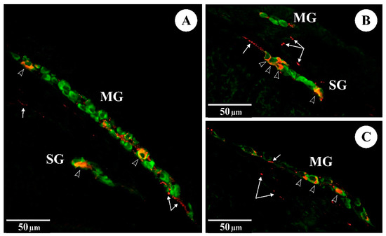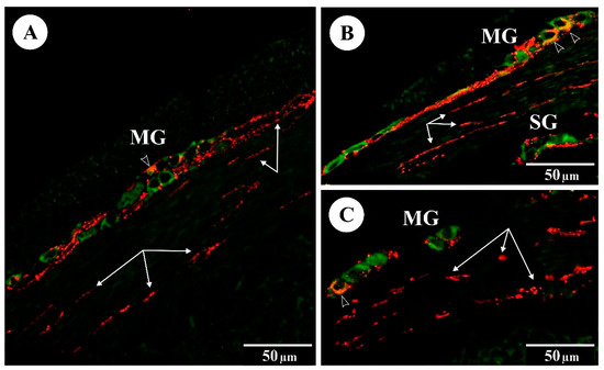 - Księżarczyk, M.M.; Arciszewski, M.B. Immunohistochemical study on the expressions of neuropeptides in the superficial and deep gland of the third eyelid of pigs. Anat. Histol. Embryol. 2021, 50, 579–587. [Google Scholar] [CrossRef]