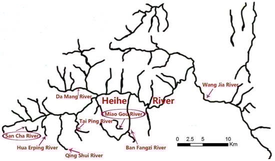 - Huang, X.M.; Tong, D. Introduction of water diversion project in Xi’an Heihe river. J. Hydraul. Eng. 1992, 2, 42. (In Chinese) [Google Scholar]