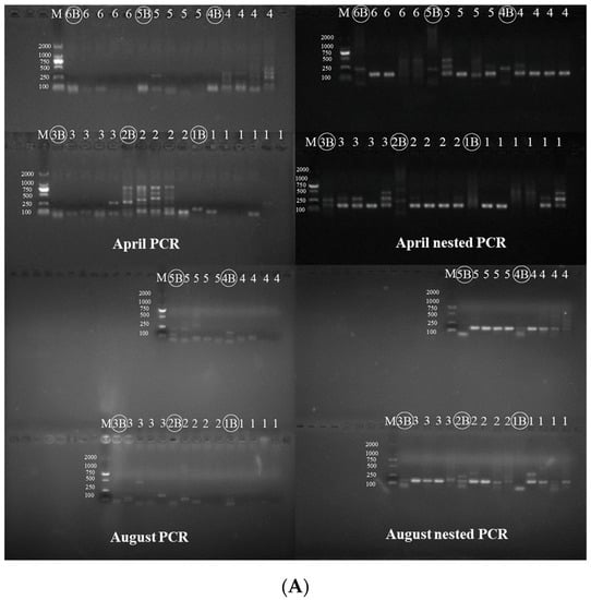 APA StyleMa, H., Zhang, H., Deng, J., Zhao, H., Kong, F., Jiang, W., Zhang, H., Dong, X., & Wang, Q. (2022). Detection the eDNA of Batrachuperus taibaiensis from the Zhouzhi Heihe River Using a Nested PCR Method and DNA Barcoding. Animals, 12(9), 1105. https://doi.org/10.3390/ani12091105