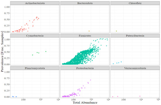 - McMurdie, P.J.; Holmes, S. Phyloseq: An R Package for Reproducible Interactive Analysis and Graphics of Microbiome Census Data. PLoS ONE 2013, 8, e61217. [Google Scholar] [CrossRef] [Green Version]
