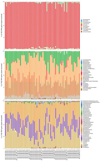 - Yilmaz, P.; Parfrey, L.W.; Yarza, P.; Gerken, J.; Pruesse, E.; Quast, C.; Schweer, T.; Peplies, J.; Ludwig, W.; Glockner, F.O. The SILVA and “All-species Living Tree Project (LTP)” taxonomic frameworks. Nucleic Acids Res. 2014, 42, 643–648. [Google Scholar] [CrossRef] [PubMed]