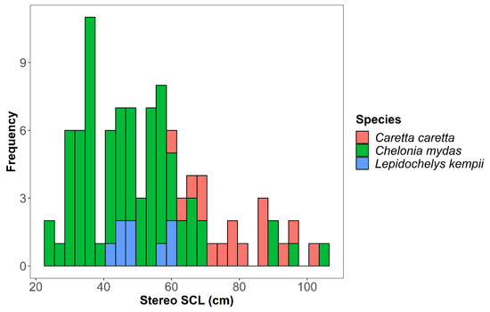 - Lamont, M.M.; Johnson, D. Variation in Species Composition, Size and Fitness of Two Multi-Species Sea Turtle Assemblages Using Different Neritic Habitats. Front. Mar. Sci. 2021, 7, 608740. [Google Scholar] [CrossRef]