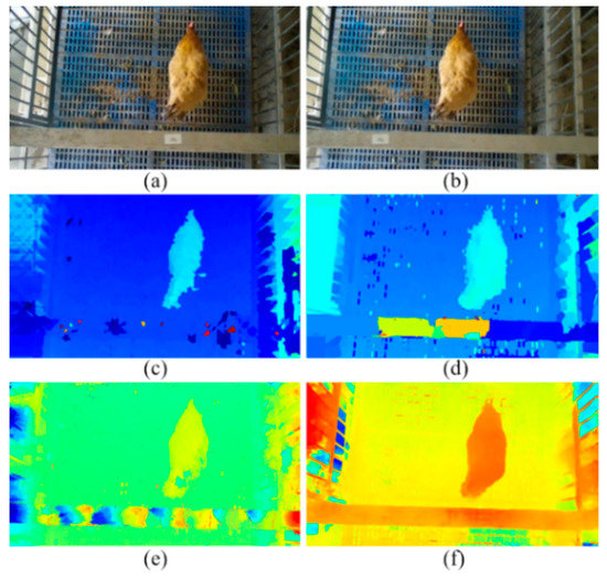 - Xiao, L.; Ding, K.; Gao, Y.; Rao, X. Behavior-induced health condition monitoring of caged chickens using binocular vision. Comput. Electron. Agric. 2019, 156, 254–262. [Google Scholar] [CrossRef]