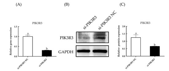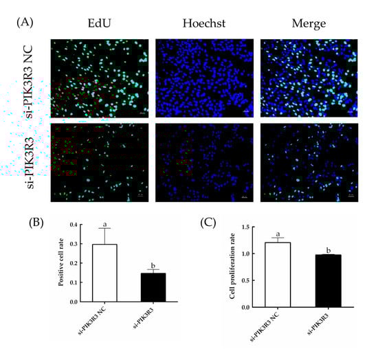 APA StyleYu, M., Li, L., Liu, M., Wang, L., Gao, X., Zhou, L., Liu, N., & He, J. (2023). miR-27a Targeting PIK3R3 Regulates the Proliferation and Apoptosis of Sheep Hair Follicle Stem Cells. Animals, 13(1), 141. https://doi.org/10.3390/ani13010141