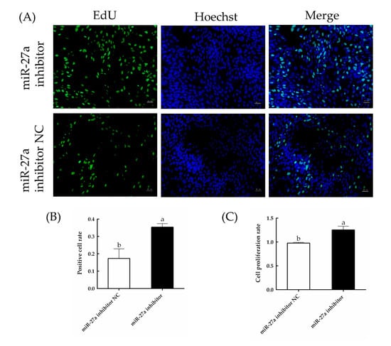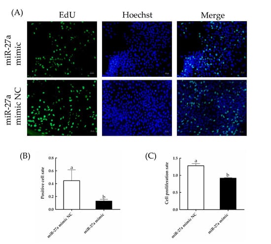 3.3. Overexpression of miR-27a Inhibits HFSC Proliferation